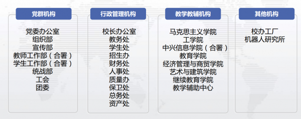 学校下设经贸学院、工学院(含信息学院)、艺术与建筑学院、教育学院(含思政教研部、基础教学部)等四个教学单位,开设有通信技术、机电一体化技术、数控技术、建设工程管理、建筑室内设计、酒店管理、电子商务、市场营销等27个适应海西和厦门市社会经济发展需要、与产业对接、市场紧缺的热门专业,形成了软件信息类、建筑工程类、经管商贸类、艺术设计类等专业群。同时设置与福建师范大学、华侨大学、集美大学联办的9个专本同读专业。学校建有数控实训中心、PLC与单片机实验室、电子商务实训室、会计电算化实训室、企业经营管理沙盘模拟实训中心等100个实训室和校内生产性实训基地。