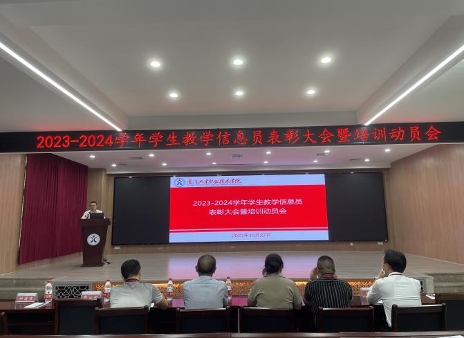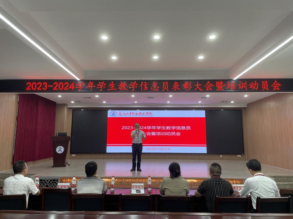 为表彰2022-2023学年优秀学生教学信息员,同时加强学生教学信息员队伍建设,提高教学信息收集、反馈工作实效,助力提高教学质量,10月27日学校组织召开学生教学信息员表彰大会暨培训动员会。副校长刘文体、各二级学院领导、质量办相关工作人员及学校教学信息员参加会议。会议由质量办副主任彭山雨主持。