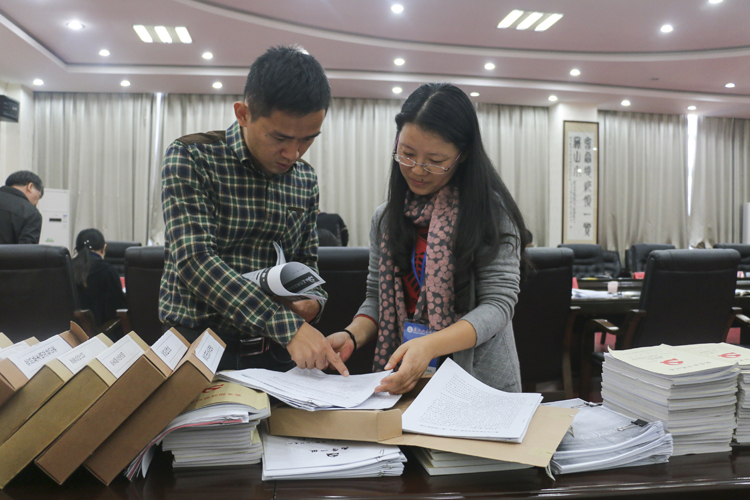 督导组副组长刘丽红,组员翁霁吟、苏晓纯,市教工委组织处黄瑾现场查阅了我校党委、各二级学院党总支、直属党支部“两学一做”学习教育各类台账、“两学一做”学习笔记、学习心得等材料,详细深入了解我校学习教育开展情况。并以书面测试的方式对各个支部共9名党员同志的“两学一做”学习情况进行了现场抽查。