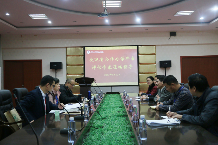 1月10日上午,省合作办学年审评估专家莅临我校检查指导合作办学情况。我校常务副校长施若谷、校长助理秦正友、对外交流中心主任蒋乐沙及商贸学院院长彭礼明、酒店管理专业负责人叶丽君陪同检查。