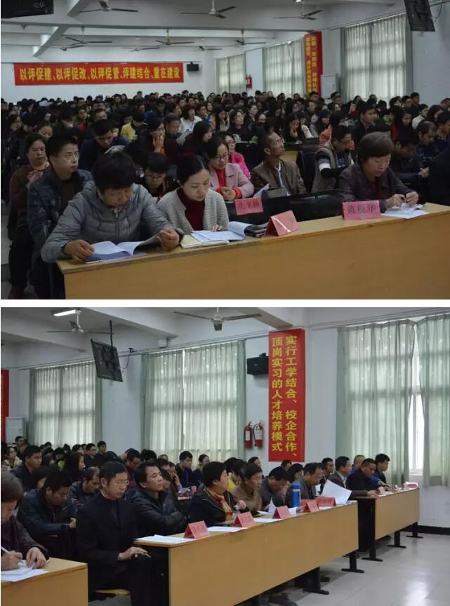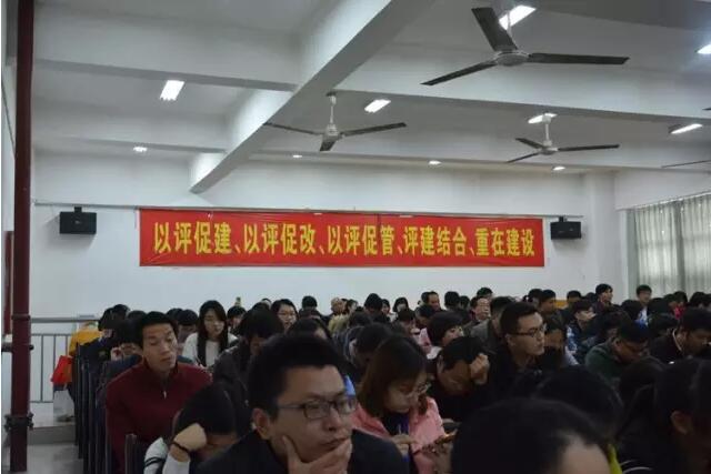 总结大会现场 施副校长主要从评建工作和常规工作两大方面回顾了本学期取得的成绩。评建主要工作即:完成“二轮评估”八大报告初稿撰写工作;继续推进校园文化建设;“专业诊断与改进”现场考评工作有序开展;“二轮评估”支撑材料整理工作逐步推进;做好迎评期间宣传报道工作等。常规工作从2015-2016学年目标管理考评工作、学生管理工作、创新创业教育工作、安全保障工作、党建工作等方面作总结汇报。