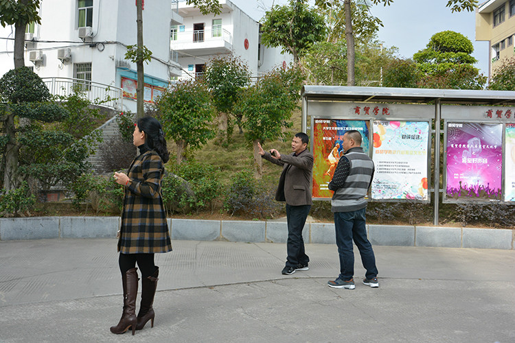 校长助理兼党政办主任秦正友、评建办副主任陈曦暄带领相关成员巡查校园,对校园宣传标识、宣传栏内容、宣传栏布置等逐一进行现场指导。对校园宣传文化氛围进行统一部署安排,对存在的问题提出整改意见,明确责任人并提出相应整改方案。