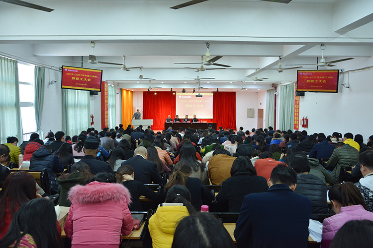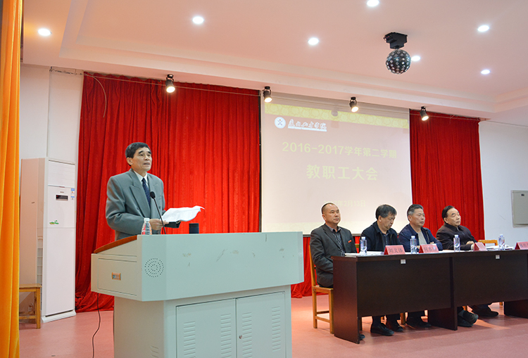 会上,施副校长作新学期工作要点解读,部署新学期工作计划。他主要从评建工作和常规工作两大方面作具体部署。根据学校部署评建工作主要分三阶段开展,一是自查自评阶段(2月-3月);审核编印主题报告,规范整理佐证材料,扎实推进内涵建设,持续改善学习成效,优化现场考察路线,精心美化校园环境,大力营造迎评氛围,全面督察评建工作;二是现场评估阶段(4月),组织召开动员大会,确定现场评估方案,接受专家组现场评估;三是整改提高阶段(5-6月)。其次是常规工作,一是大力加强党建工作;二是努力提升教师教学科研能力;三是扎实推进学生教育管理工作;四是认真做好2017年招生工作;五是加强创新创业教育;六是推进网络和图书等资源建设;七是进一步整治校园内部环境。最后,施副校长代表校领导,祝愿新的一年万象更新,坚定信念,乐观,饱满的精神面貌迎接“二轮评估”的最后胜利。