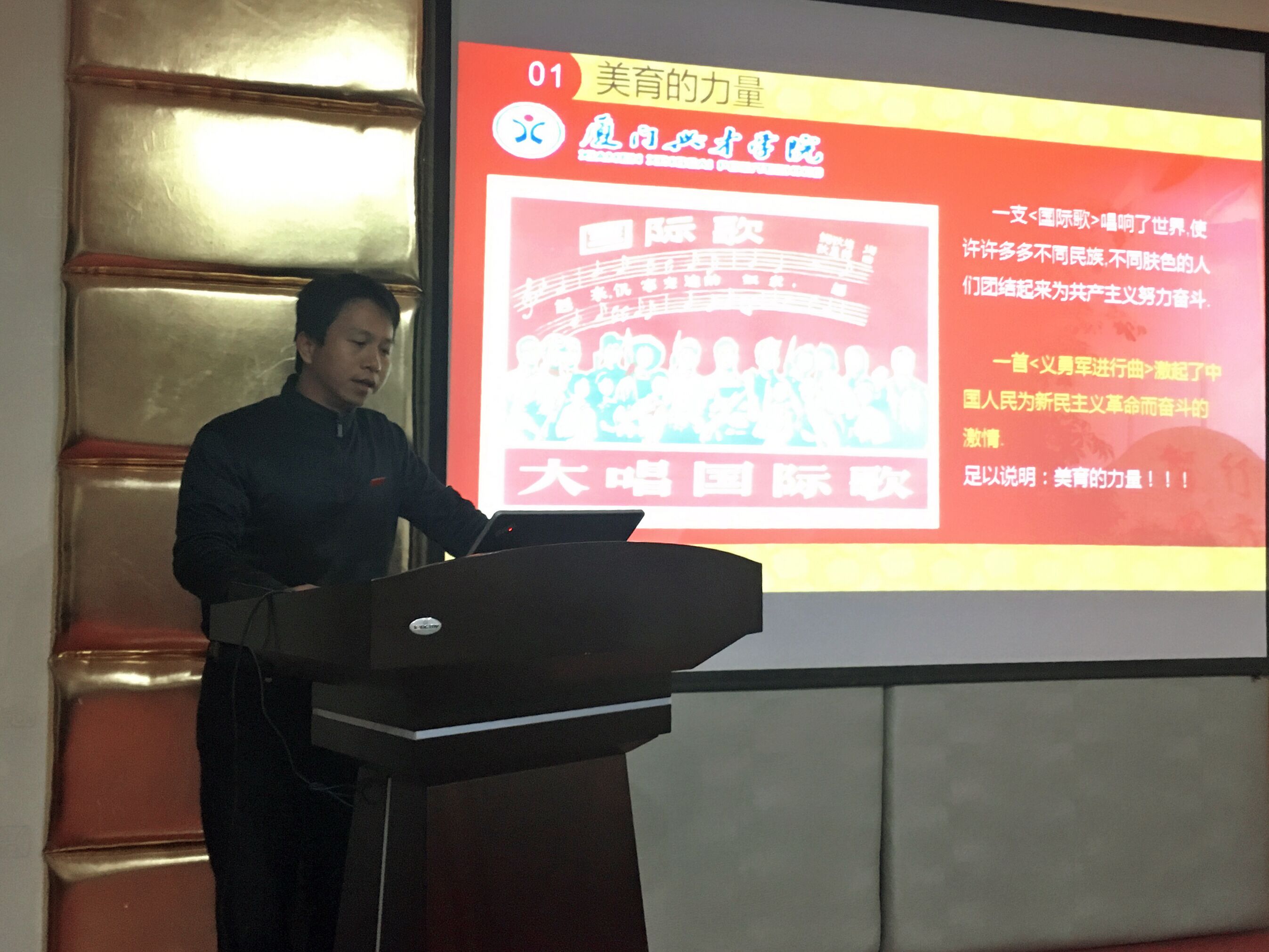 学生处围绕“一条主线”“四大载体”(即以“大学生文明修身工程”为主线,通过孝亲感恩活动、大学生导师制、青年志愿者服务和“快乐学习·快乐生活”系列活动等四大载体,培养“学会做人,学会做事”的文明出彩的巅峰国际学子)和艺术团教育成果展开六项汇报。各学院“一院一亮点”,分别以“手机进口袋,知识进脑袋——管理学院实施课堂无手机活动”、“以‘我寻、我学、我做’为主线,积极倡导就业、创业双向发展”、“班歌践行中国梦,美育渗透巅峰国际情 ”、“搭建薪火传承平台,发挥支部堡垒作用”和“国学经典进校园,知礼明行伴成长”为题,利用多媒体课件,条理清晰、图文并茂、重点突出地展示各自的特色成果。