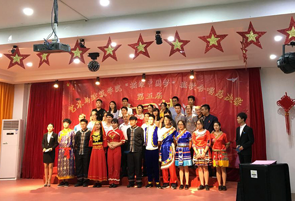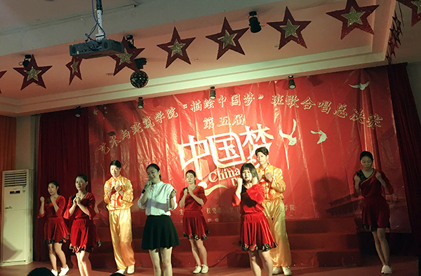 随后六支队伍通过形式多样的演唱表演方式分别完成了必唱曲目《走向复兴》和自选曲目。比赛气氛活泼紧张,各班学子极尽所能展现各自风采,他们以高昂的热情、出众的才艺博得了台下老师同学们的阵阵喝彩。来自16级建工和造价专业的“追梦队”以其颇具民族风格的演唱形式、精美的少数民族服装,精心演绎《相亲相爱》,体现了班集体团结奋进的精神风貌。